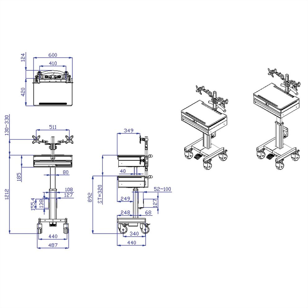 Mobiili tietokonealusta, jota voidaan käyttää tehtaissa, sairaaloissa, ostoskeskuksissa, vähittäiskaupoissa ja tavarataloissa jne.