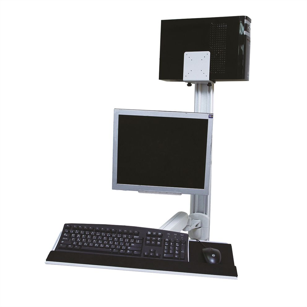 Tämä on täydellinen ratkaisu, johon mahtuu LCD-näyttö, näppäimistö ja prosessori ja joka luo istuma-työaseman