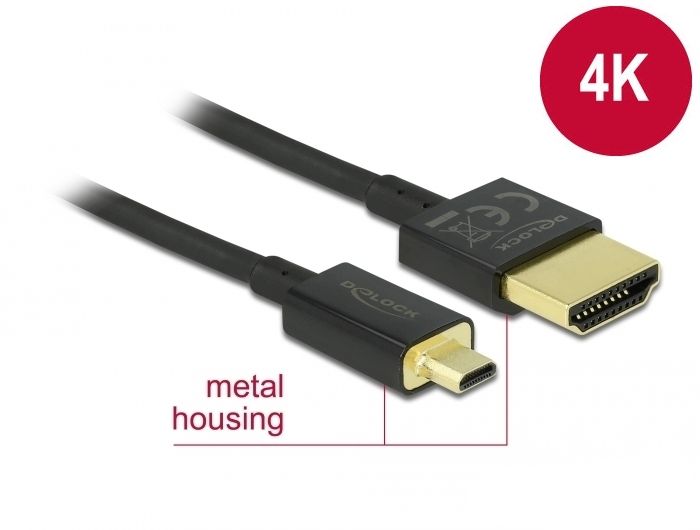 Delock High Speed HDMI with Ethernet micro HDMI - HDMI Slim Aktiivi 4K 60Hz 3 m