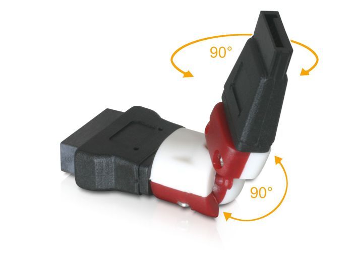 Tämän Delockin SATA-kiertosovittimen avulla voit kääntää emolevyn SATA-naarasportin mihin tahansa suuntaan.