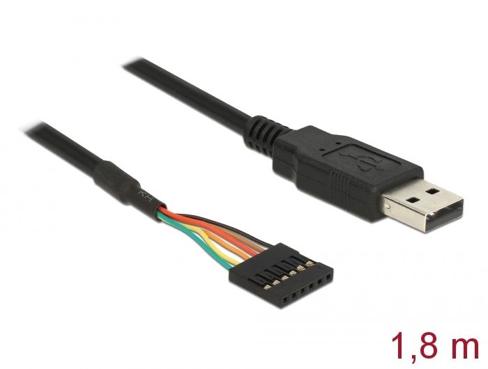 Delock muunnin USB 2.0 uros> TTL 6-napainen naarasliitin 1,8 m (3,3 V)