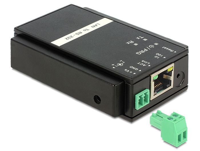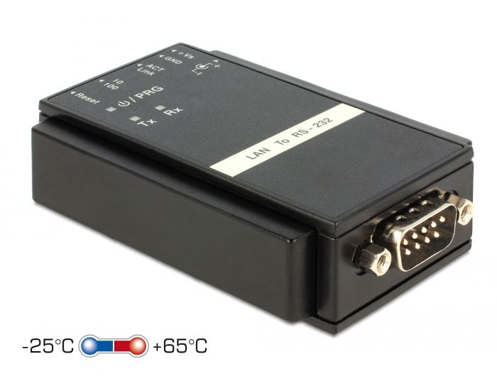 Delockin Delockin TCP / IP Ethernet - RS-232 -muuntimen avulla voit integroida ja ohjata RS-232-pohjaisia sarjalaitteita verkon kautta. Muunnin soveltuu DIN-kiskoasennukseen.