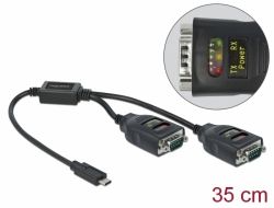 Tämä Delockin USB Type-C ™ -sarja-adapteri tarjoaa kaksi RS-232 DB9 -liitäntää tulostimille, mittauslaitteille, ohjaimille, IoT-laitteille jne. Jokaisessa RS-232-portissa kolme LED-valoa ilmaisee lähetyksen ja vastaanoton tilan sekä USB-virta.