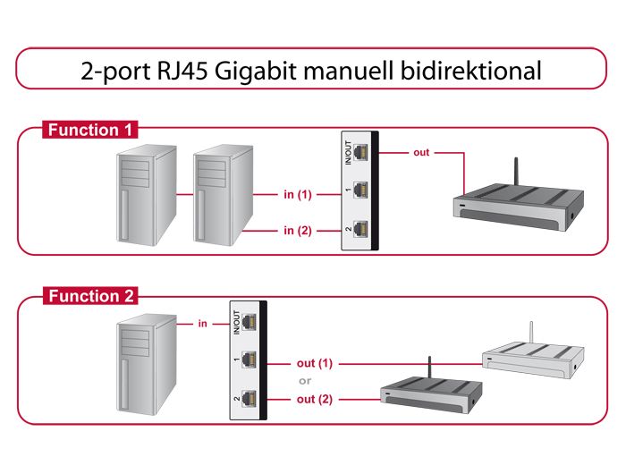 Tämä Delockin RJ45-kytkin on manuaalinen kaksisuuntainen kytkin eri laitteiden kytkemiseen RJ45-portilla, joka tarjoaa kaksi erilaista sovellusta.