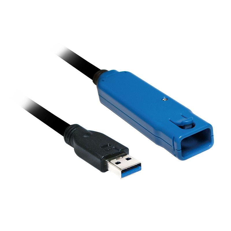 Aktiivinen USB 3.0 -jatkokaapeli, USB-A/uros - USB-A/naaras, vahvistin, musta/sininen, 10 m