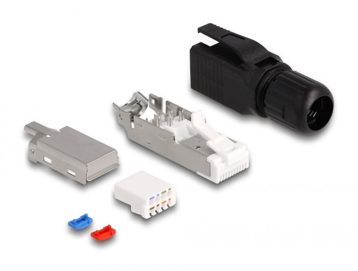 Tätä Delockin RJ45-pistoketta voidaan käyttää verkkokaapeleiden kytkemiseen. Pistokkeen asennus eri kaapelityyppeihin on työkalutonta ja aikaa säästävää.