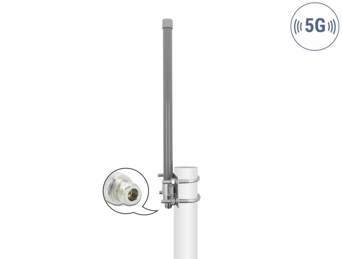 Delock 5G 3,3 - 3,8 GHz antenni N jack 8 dBi 50 cm ympärisäteilevä harmaa ulkokäyttöön