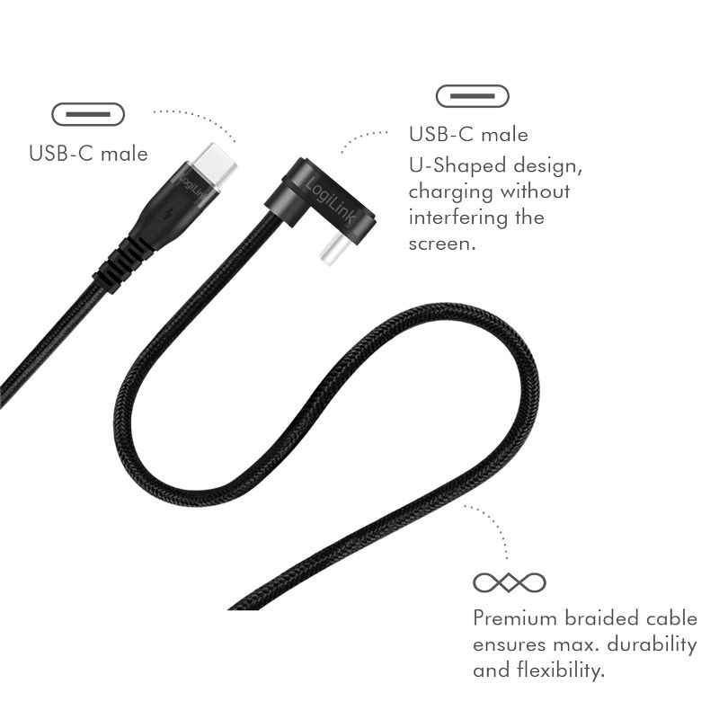 Kätevä 180° kulmassa oleva USB-C-pelikaapeli on ihanteellinen puhelimen tai kannettavan tietokoneen liittämiseen virtapankkiin tai USB-virtalähteeseen ilman, että kaapeli häiritsee pelinautintoa. Lataa laitettasi kätevästi ja mukavasti pelin aikana.