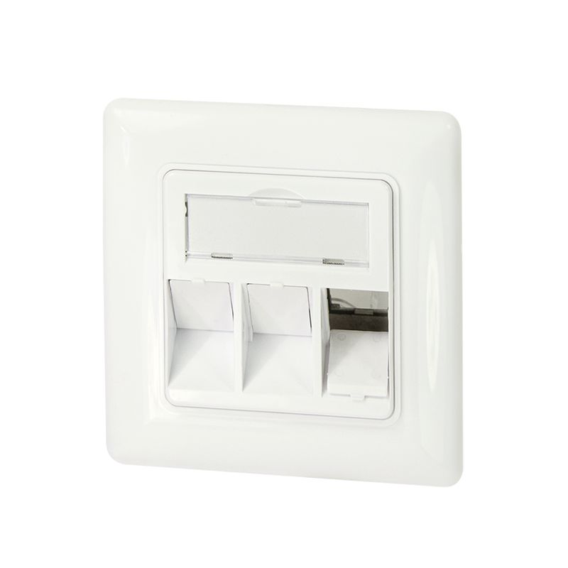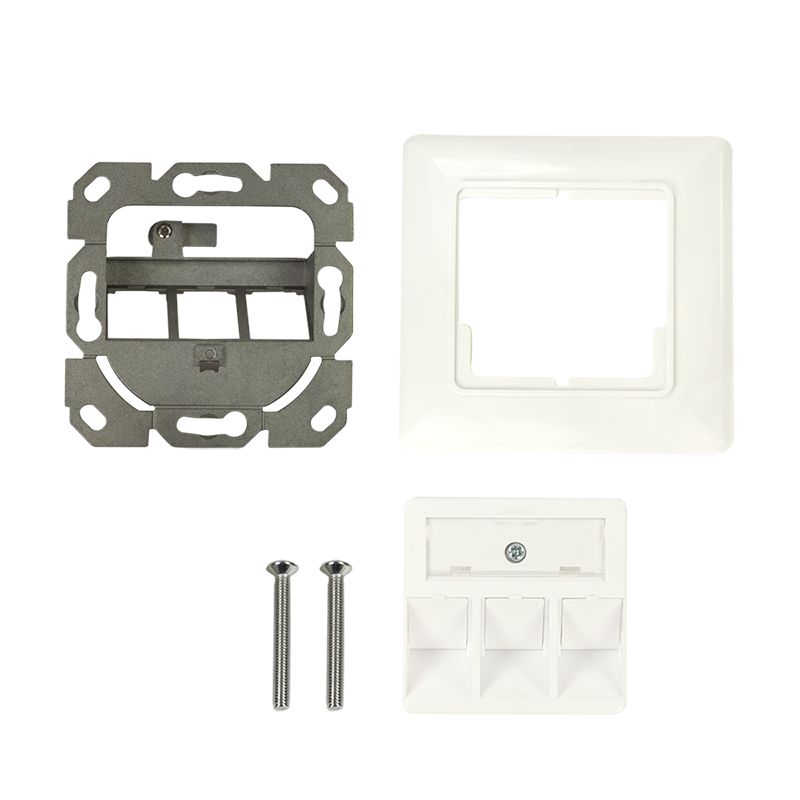 Etulevy kolmelle Keystone-liittimelle, 45° kulmassa oleva ulostulo, puhtaan valkoinen