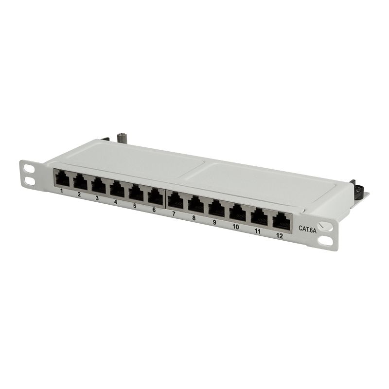 Kytkentäpaneeli 10" Cat6A 12 porttia suojattu, 0,5U, vaaleanharmaa