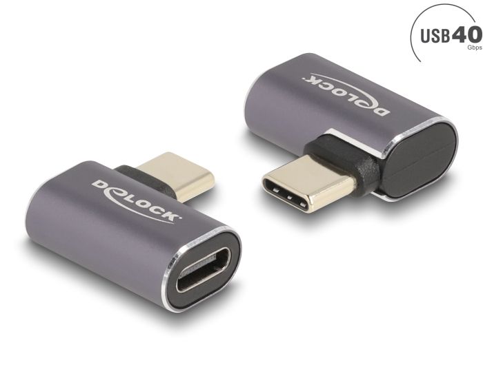 Delock USB-sovitin kulmalla oikea/vasen 40 Gbps USB Type-C uros-naaras metallinen