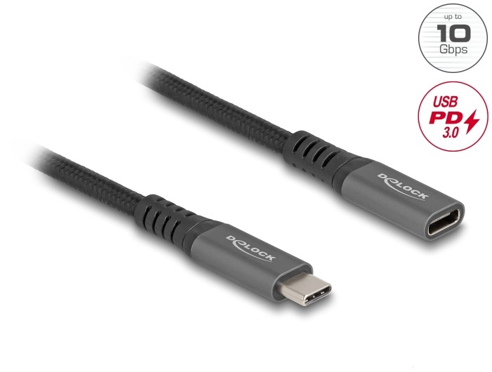 Delock USB 10 Gbps jatkokaapeli USB-C PD 3.0 100 W 0.5 m harmaa metal