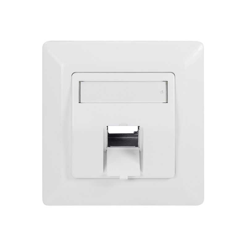 Etulevy yhdelle Keystone-liittimelle, 45° kulmassa oleva ulostulo, signaali valkoinen