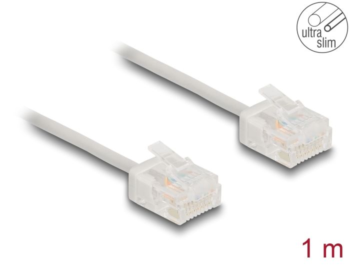 Ethernetkaapeli RJ45 Cat.6 UTP Ultra Slim, lyhyt liitin, harmaa 1,0 m