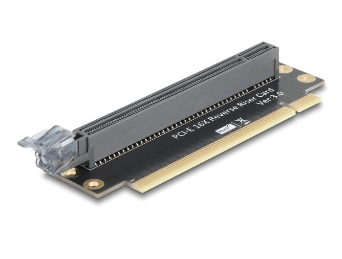 Delockin PCI Express riser card mahdollistaa PCI Express x16 -kortin liittämisen. Tämän tyyppinen vaaka-asennus on tarpeen erilaisissa telineasennustapauksissa, joissa pystyasennus ei ole mahdollista tilanrajoituksen vuoksi.