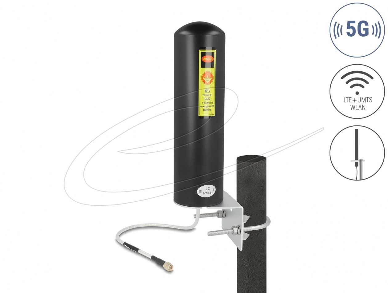 Delock 5G LTE -antenni SMA-liittimellä, 3-5 dBi, kiinteä, monisuuntainen, seinä- ja pylväsasennus, ulkokäyttöön, musta