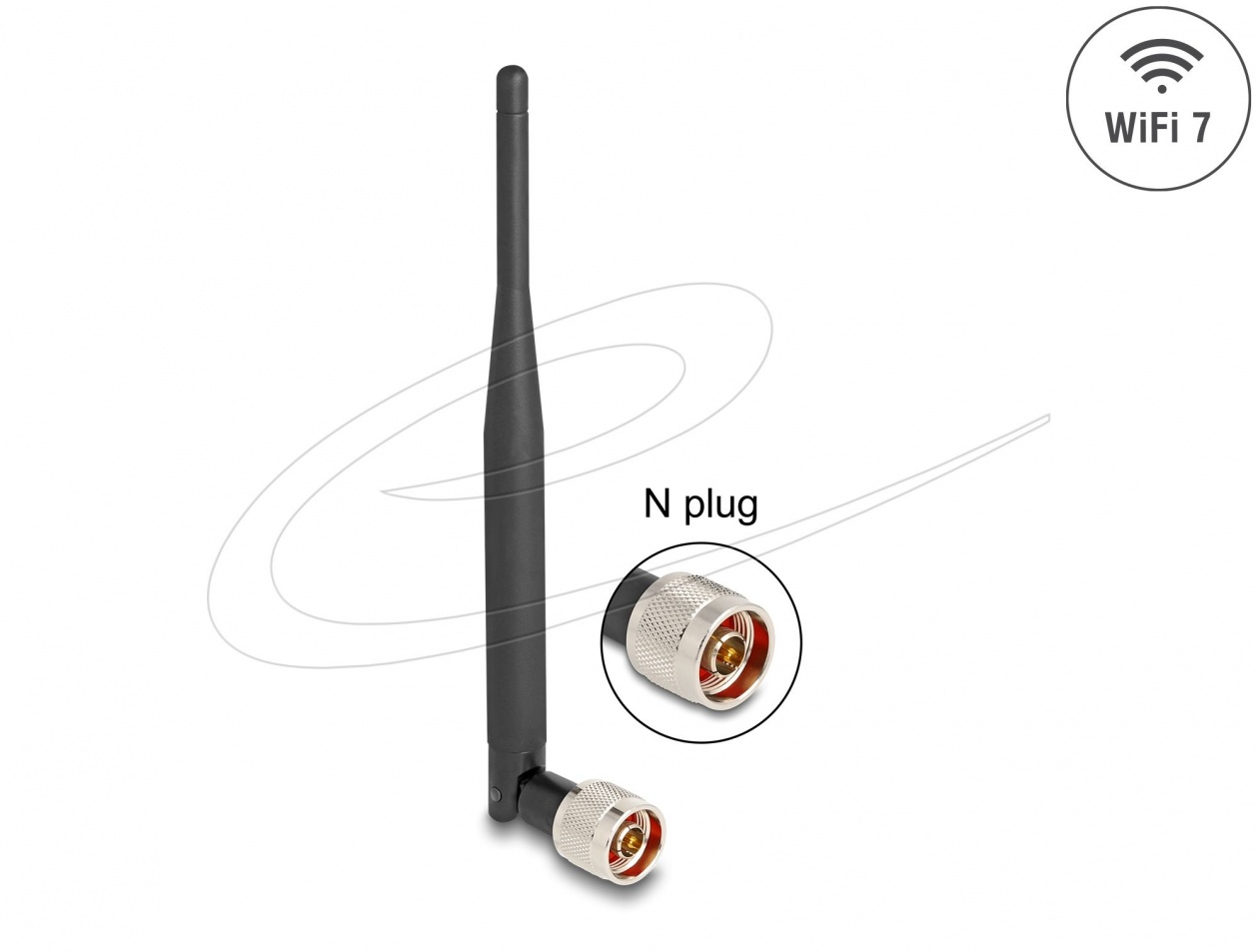 Delock WiFi 7 -antenni, N-liitin, 2-3 dBi, 20,6 cm, monisuuntainen, kallistuvalla liitoksella ja joustavalla materiaalilla, musta
