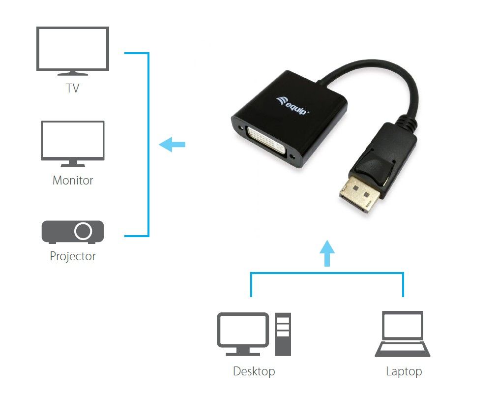 DisplayPort- ja DVI-liitäntöjen yhdistämiseen. Korkealaatuisista materiaaleista valmistettu sovitin yhdistää DisplayPort-liitännällä varustetut laitteet, kuten tietokoneen ja kannettavan tietokoneen, DVI-liitännällä varustettuun näyttöön. Ei tarvitse ostaa toista näyttöä käyttöönottoa varten.