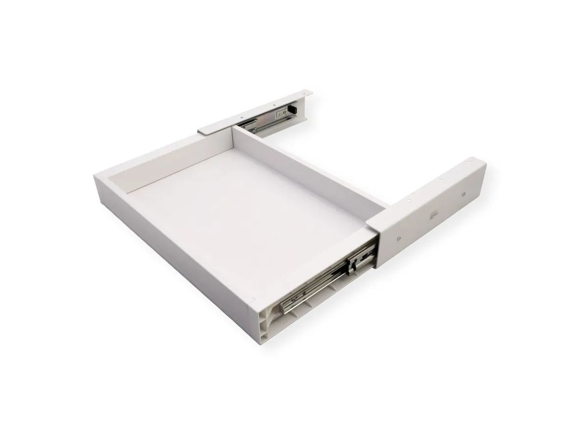 Erittäin ohut pöydän alle kiinnitettävä säilytyslaatikko, leveys 420 mm, valkoinen