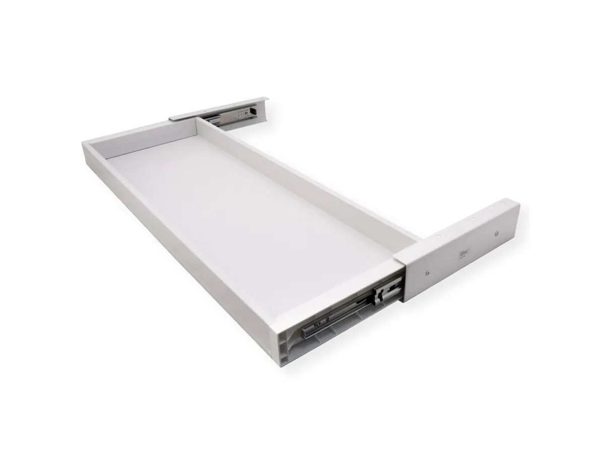 Erittäin ohut pöydän alle kiinnitettävä säilytyslaatikko, leveys 758 mm, valkoinen