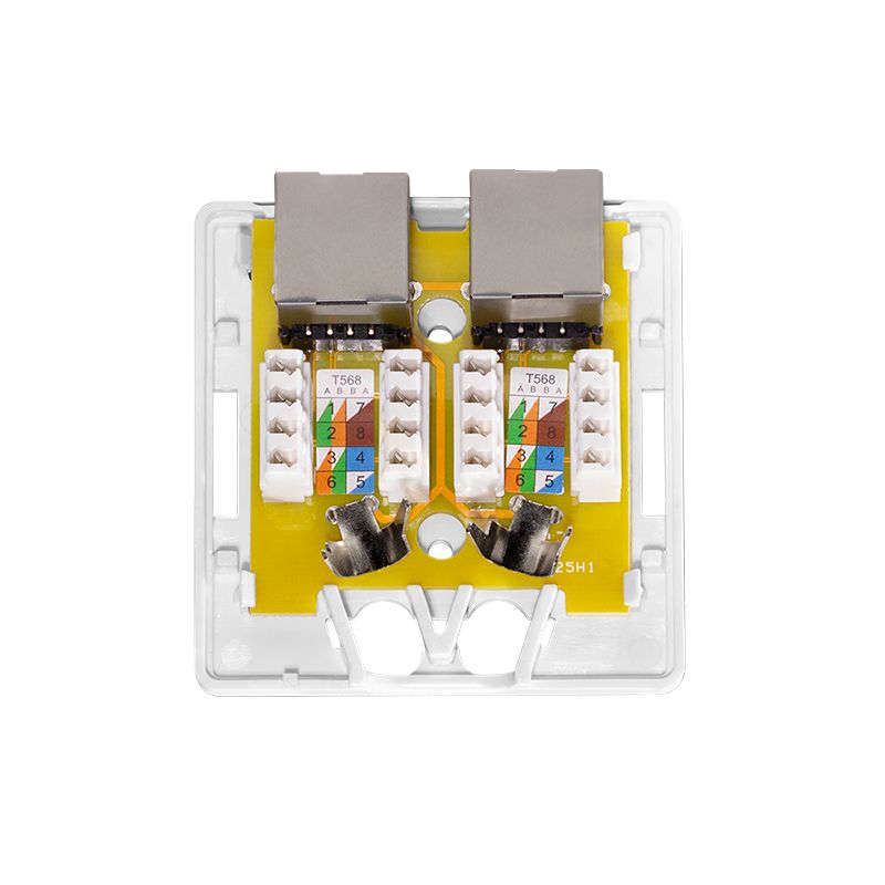 Kompakti RJ45-pistorasia pinta-asennukseen. Kahdella suojatulla RJ45-liittimellä. Suunniteltu Cat.6A 500 MHz:lle, tämä pistorasia sopii kaikkeen tiedonsiirtoon jopa 10 Gigabit Ethernetiin asti, mukaan lukien PoE ja PoE+. Kestävä muovikotelo voidaan avata ilman työkaluja. Kiinnitys tehdään ruuvaamalla tai liimaamalla.