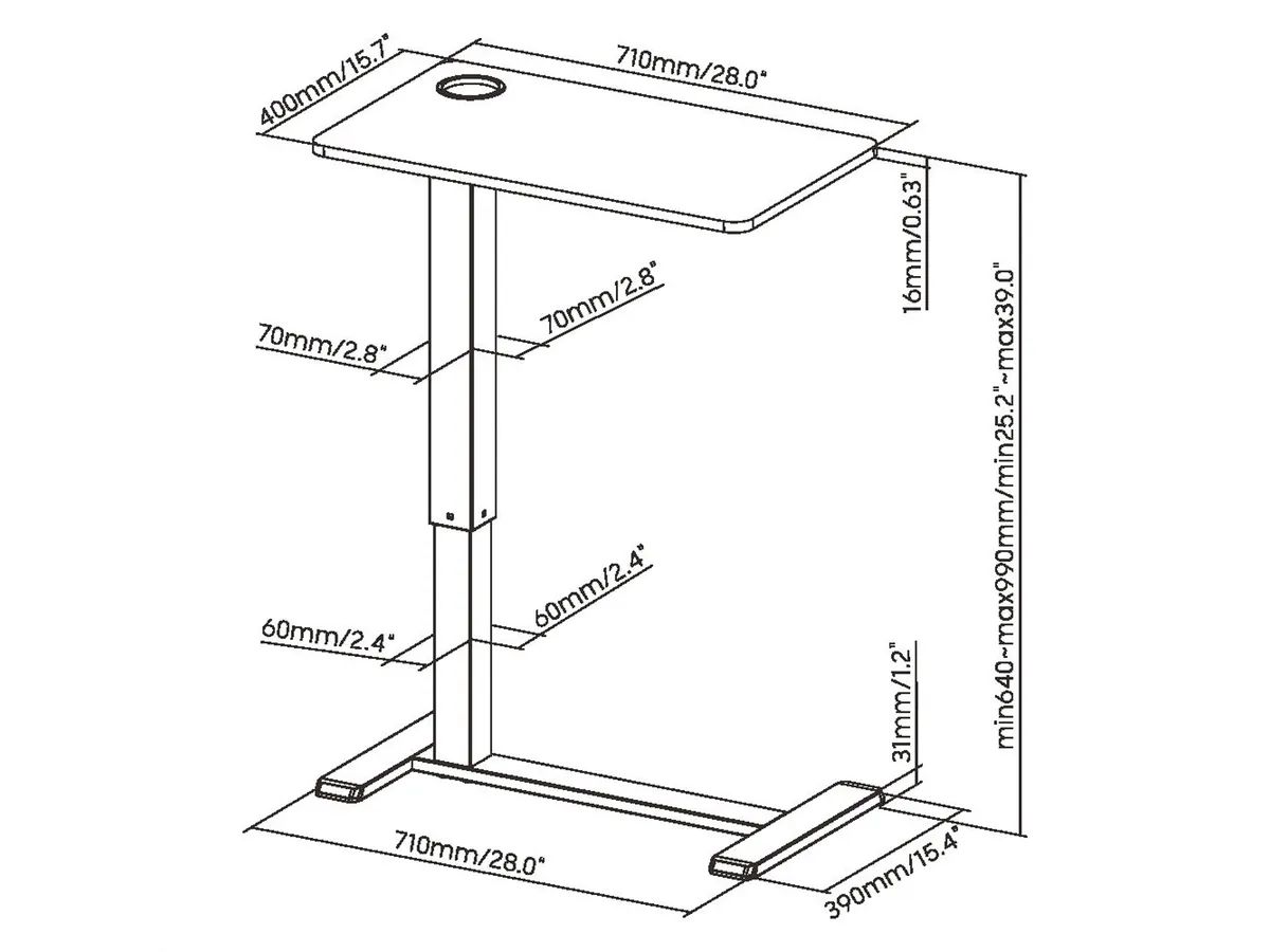 Tämä kaasujousella varustettu sivupöytä on helposti korkeussäädettävä. Piilotetut pyörät pienentävät pöydän jalustan korkeutta, joten se sopii lähes kaikkien sänkyjen tai sohvien alle. Korkealaatuinen kaasujousi, jossa on itselukittuva mekanismi, varmistaa sujuvan ja vaivattoman korkeudensäädön. Vakaa pylväs yhdessä tukevan rungon kanssa lisäävät vakautta.