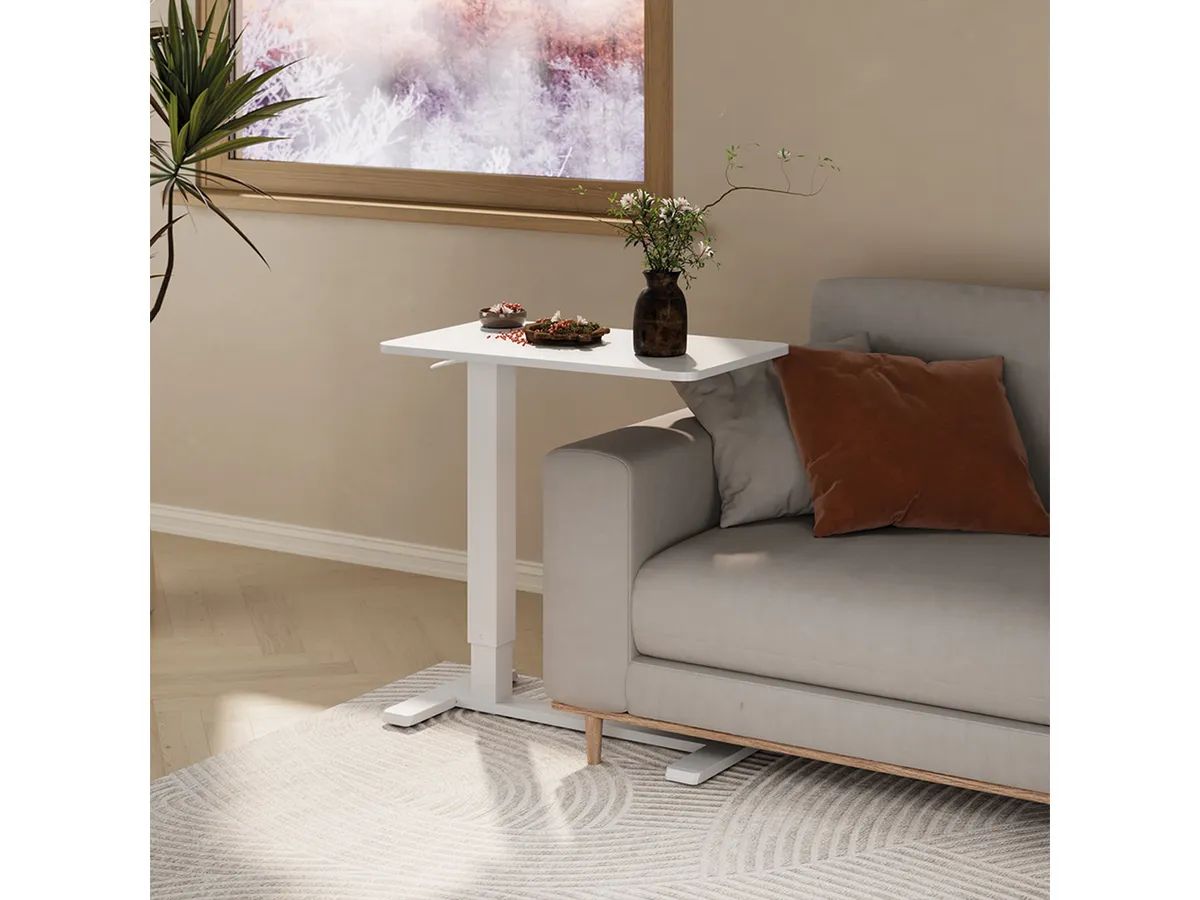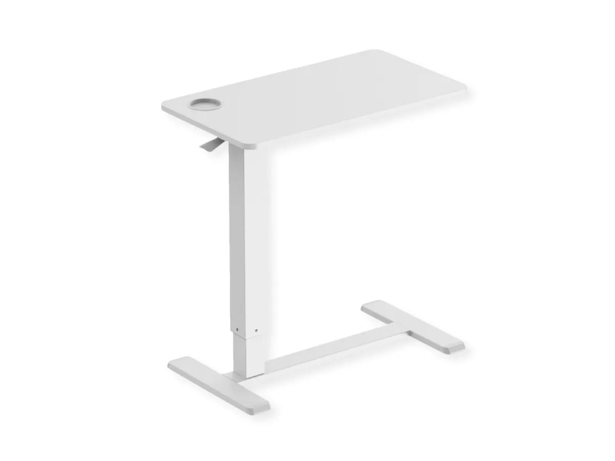 Kaasujousitettu sivupöytä / työpiste, korkeussäädettävä, piilopyörät, valkoinen