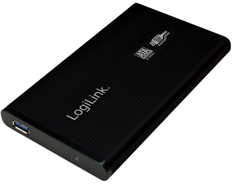 LogiLinkin ulkoinen alumiinikotelo 2,5 tuuman SATA-kiintolevyjen asentamiseen ja käyttöön. Vakiokoko. Yhteensopiva kaikkien kannettavien kiintolevyjen kanssa. Liitäntä tietokoneen tai kannettavan kautta nopean USB 3.0 Super Speed -liitännän kautta. USB tarkoittaa Universal Serial Bus -porttia ja toimii Siirtonopeus on enintään 5 Gbit / s.