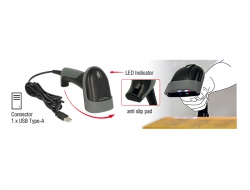 Tämä Delockin langallinen USB-viivakoodinlukija voidaan liittää tietokoneen tai kannettavan tietokoneen vapaaseen USB Type-A -naarasporttiin. Tämän lineaarisen viivakoodinlukijan laserluokan 1 ja sen lineaarisen CMOS-kuvasensorin avulla kaikki yleiset 1D-viivakoodityypit voidaan havaita tarkasti jopa pitkiltä etäisyyksiltä. Lisäksi tämä kädessä pidettävä viivakoodilukija pystyy lukemaan näytöillä ja näytöillä näkyviä viivakoodeja. Skanneri säätää itsensä automaattisesti ympäröivän kirkkauden mukaan ja tallentaa jopa 280 skannausta sekunnissa optimaalisissa valaistusolosuhteissa. Vähäisessä valossa viivakoodi valaisee ylimääräisellä valkoisella LEDillä ja sitä voidaan käyttää hämärässä. Käytetyn laserteknologian ansiosta laservalo on ihmissilmälle vaaratonta.