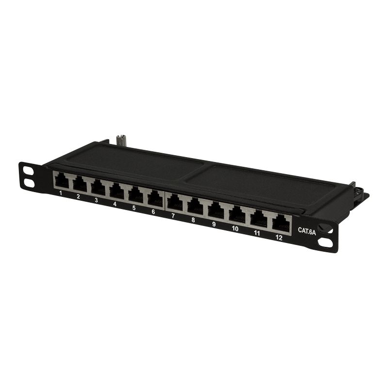 Kytkentäpaneeli 10" Cat.6A 12 porttia suojattu, musta 0,5 U